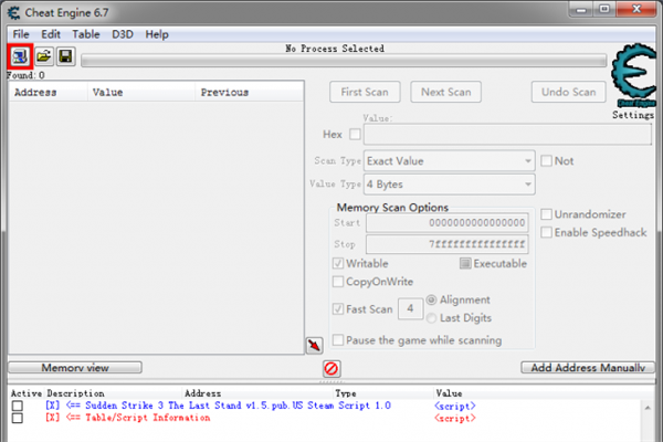 启动CE(Cheat Engine)点击左上角的【一个放大镜一个电脑】的图标,就是读取查找当前进程然后找到你想要作弊的游戏的进程,双击或者点一下按open就读取成功了