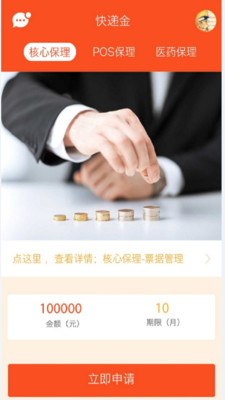 快递金app是专为中小企业打造的一款手机借贷应用,这款软件为用户们提供了便捷的线上借贷平台,它拥有许多安全、额度灵活的借贷产品,用户们可以通过它实时在线获取借款,解决您的燃眉之急。