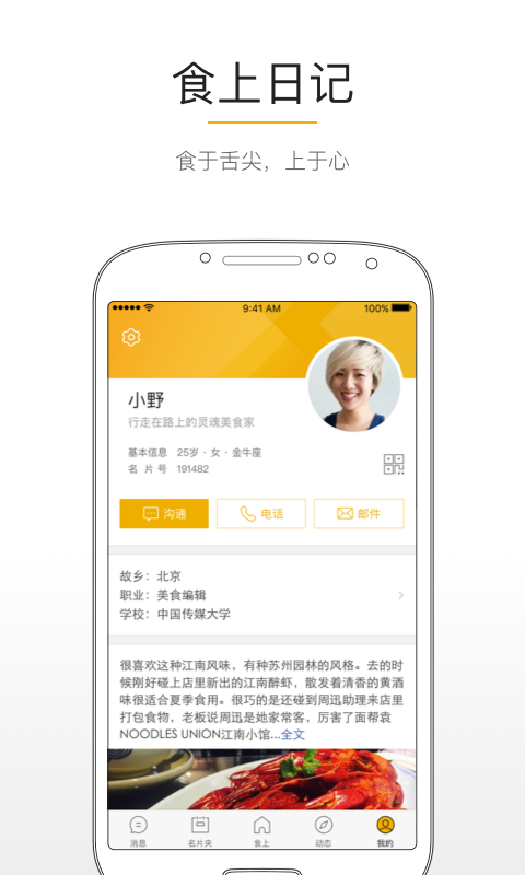 食上app是一款食于舌尖上于心吃货聚集地。食上app食上汇聚专业的美食主播、美食编辑、以及各路美食达人,让吃变得更有文化、更有情调、更有范儿。食上,食于舌尖,上于心。关于美食推荐、美食文化、美食知识、美食故事这些事儿,在食上都能找到答案;从日常简餐到满汉全席,从食物起源到营养搭配,“懂吃”的人都在这里,讲述他们的舌尖故事;