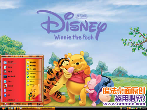 魔法桌面原创xp、vista、windows7通用版小熊维尼桌面主题,主题是魔法桌面应网友Aic_楠同学的要求,制作的一款小熊维尼的xp、vista、win7三合一桌面主题。希望各位喜欢维尼的朋友们能够喜欢。