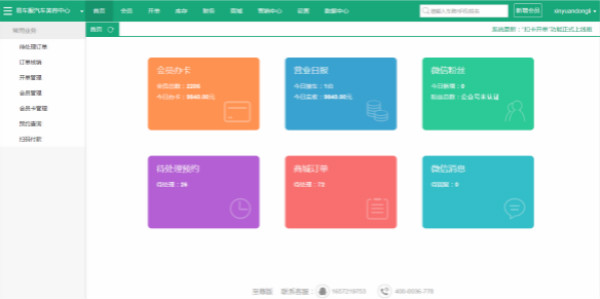 易车服SCRM汽车美容管理系统主要分为八大模块。会员中心、微信商城、库存管理、数据中心、店铺管理、财务管理、营销管理、开单收银。一、会员管理