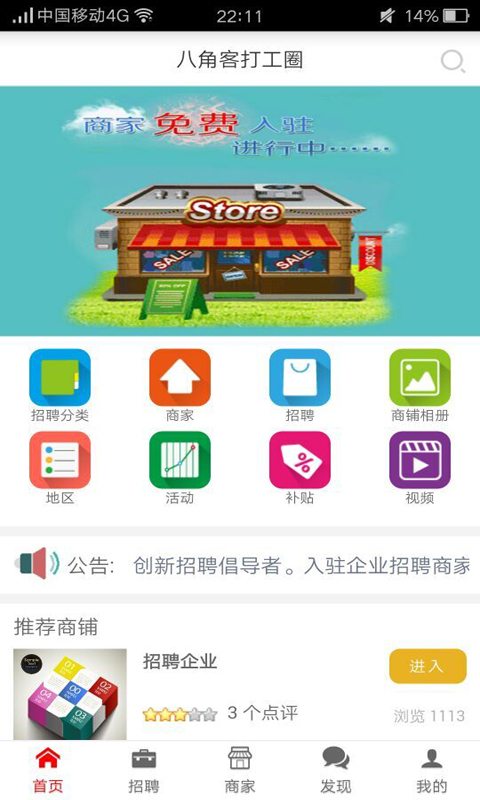 八角客打工圈——我们秉承“办互联网+O2O招聘商家、创知名品牌”的经营理念,国内互联网招聘O2O创新招聘倡导者。入驻企业招聘商家综合性打造蓝领求职招聘商城,为蓝领求职者提供海量优质用工企业及优质的劳务派遣企业提供给蓝领求职者选择,让您享受在线求职的乐趣。