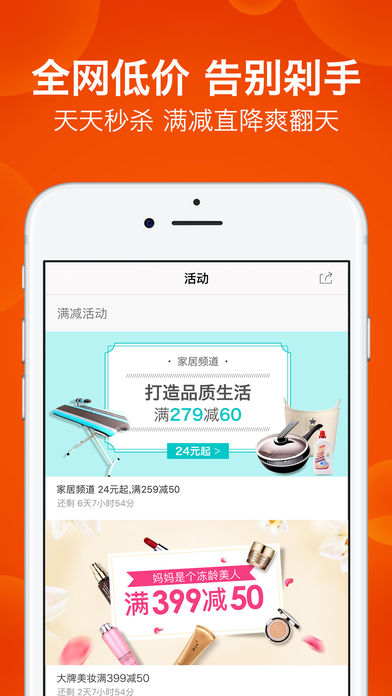 1元拍宝、每日秒杀、定期满减等深度折扣。