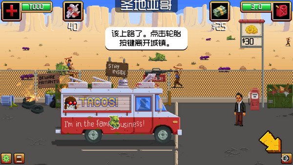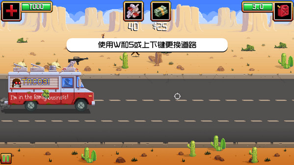 《枪炮卷饼卡车》(Gunman Taco Truck)是一款像素风格的策略经营类游戏。游戏以制作墨西哥卷饼为题材,驾驶改装后的卷饼卡车,消灭阻止你前进的怪物,到达各个小镇上,为生活在水深火热的居民提供美味的煎饼。玩家可以使用金钱升级卡车,购买新的武器,抵达下一个小镇。【游戏特色】