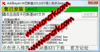 卡巴斯基2011KEY导入助手 V1.0 简体中文绿色免费版 功能: