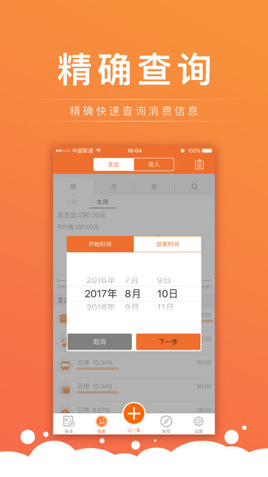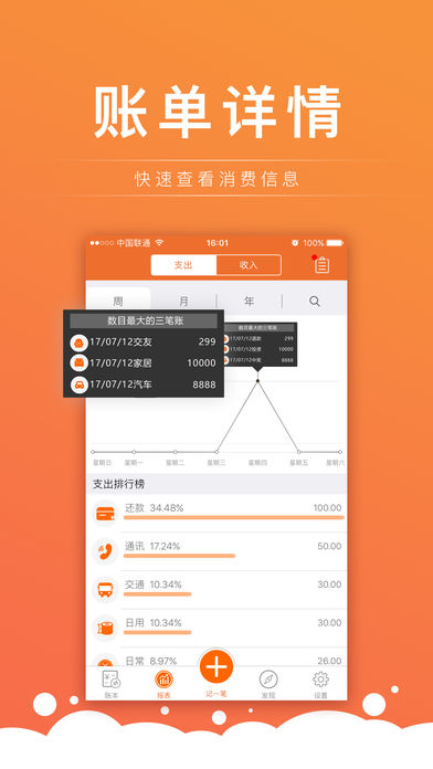 智能统计:线图饼图展现,清晰了解每周、每月收支构成;