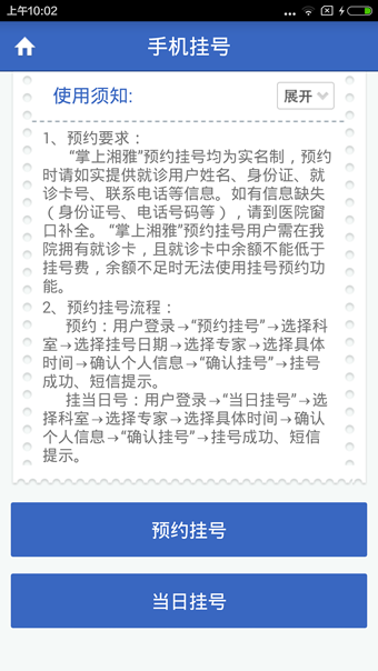 中南大学湘雅医院是国家教育部重点高校—中南大学附属的大型综合性三级甲等医院。湘雅遵循“公勇勤慎、诚爱谦廉、求真求确、必邃必专”的湘雅校训,秉承“严谨、团结、求实、进取”的湘雅精神,培养造就了张孝骞、汤飞凡、李振翩等一大批在国内外有影响的医学名医名家。湘雅医院学科设置齐全,技术力量雄厚,整体水平居全国医疗卫生机构第一方阵。医疗诊治水平稳居全国前列,教育教学水平全国领先。【使用方法】