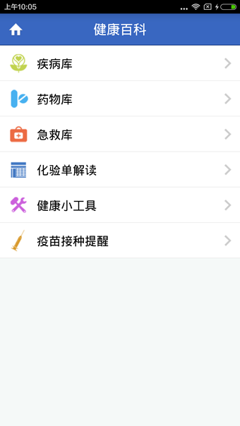 收录了疾病库、药物库、急救库、化验单解读、健康小工具、疫苗接种提醒等模块,让病友了解到更多的医学小常识,体验健康的生活方式。
