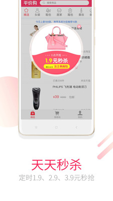 平价购每日10点上新千款新品,覆盖男女服饰鞋包、童装童鞋、日用百货、数码家电、文具图书、美妆个护、美食、母婴等各个类目。