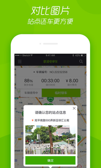 3、无桩限制,随借随还。无站点桩位限制,城市公共停车区域还车即可