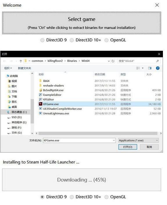 运行ReShade_Setup_3.0.8.exe, selete game ,选择 kfgame.exe,勾选 direct 10+模式,接着弹出一个窗口,选择”是“,下载完毕后,仅勾选LumaSharpen.fx 和 Tonemap.fx ,点OK,安装完毕。接着把压缩包里的 KF2..ini 放在 KFGame.exe 所在的目录下 ,然后进入游戏,shift+f2 打开设置界面 。在home标签下,根据提示进行设置,最后会出现如下界面