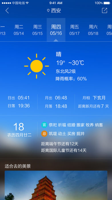 6、生活指数:穿衣指数、感冒指数、洗车指数、运动指数、旅游指数等多项指数,为您出穿住行提供贴心服务。