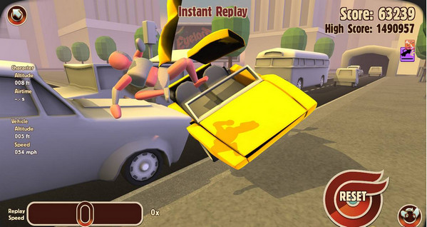Turbo Dismount《车祸英雄》这款另类游戏,它是Stair Dismount Universal《跳楼英雄》的续作。在《跳楼英雄》中,玩家的目标非常简单,把一个站在高处的木头人推下去,木头人受到的损伤越大,你的得分越高。你可以选择推人的部位和力道,计算好木头人坠落的轨迹,最好能使他撞到最多的障碍物,让其粉身碎骨就是你的终极目标!这是一款彻头彻尾的恶搞风游戏,反人类指数可是不低。而在续作Turbo Dismount《车祸英雄》中,游戏的反人类黑暗指数更是直线上升,可怜的木头人被安排坐在不同型号的车辆中,或是在公路上被来来往往的车撞个不停,或是直接驾车冲向一堵墙!总之还是那个宗旨,木头人损伤越大,得分越高!