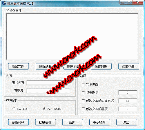CAD批量文本替换程序采用基于AutoCAD的VBA编写,能够批量替换多个文件中的相同文本。免费软件,无任何功能和时间上的限制。