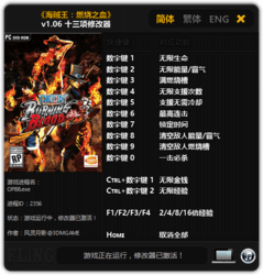 数字键 1 - 无限生命数字键 2 - 无限能量/霸气