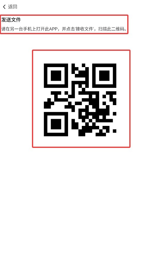 3、请让对方手机也开启该软件,点击“收文件”,通过扫描你屏幕上的二维码,就能完成文件传输。