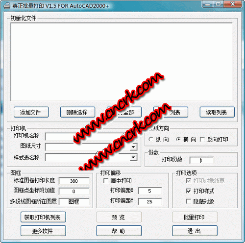CAD真正批量打印程序 V2.0 简体中文绿色免费版 CAD真正批量打印程序采用基于AutoCAD的VBA编写,能够自动计算每张图纸的打印比例,批量打印多张任意位置CAD图形,每张CAD图形也可以包含多个随意摆放的打印区域。 让繁琐的打印变成一件愉悦的事情。免费软件,无任何功能和时间上的限制。