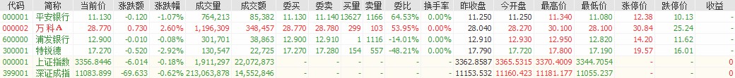 3、将鼠标移动到主界面上时会提示更详细的股票信息与分时图;
