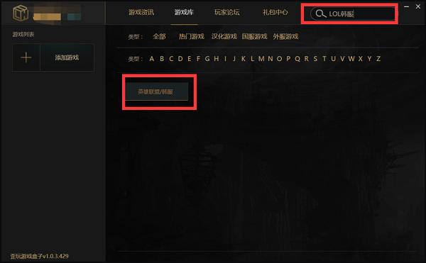 1.在搜索框搜索LOL韩服/美服/日服,并添加。