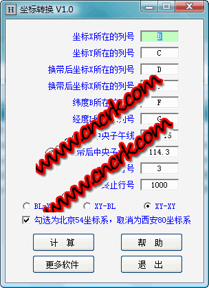 能够批量进行高斯正算、高斯反算、坐标换带计算。免费软件,无任何功能和时间上的限制。