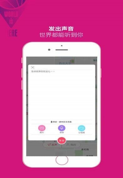 我在这儿,一款真正在地图上玩的社交软件,开启不再用数字显示距离的时代。只要你愿意,你不只可以发现附近的人,你还可以去发现地球上任一一个角落的人 ,能看到他们在说什么,在关注什么话题,在做什么有趣的事情。【软件特色】
