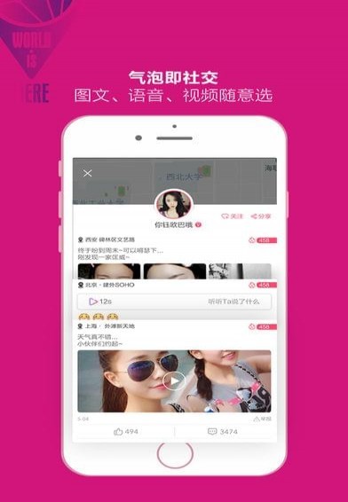 3、气泡即社交 图文、语音、视频随意选