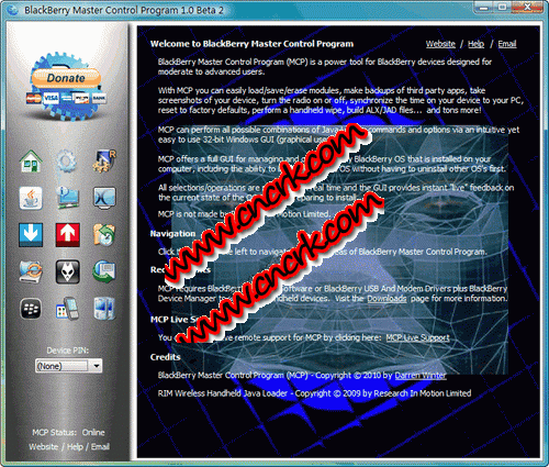 BlackBerry Master Control Program V1.0 英文官方安装版 该工具操作非常简单,功能强大,有些地方超过黑莓桌面器的应用功能。它可以实现:图形化执行所有JaveLoader的功能;升级和降级你PC上安装的任何黑莓系统os;重新定义os文件安装地点;简单完成常见的黑莓工具的基本动作。
