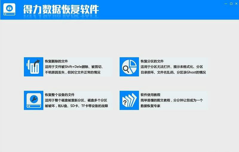 第一步、运行得力数据恢复软件。第二步、选择需要分析的分区,然后点"开始扫描"按钮。