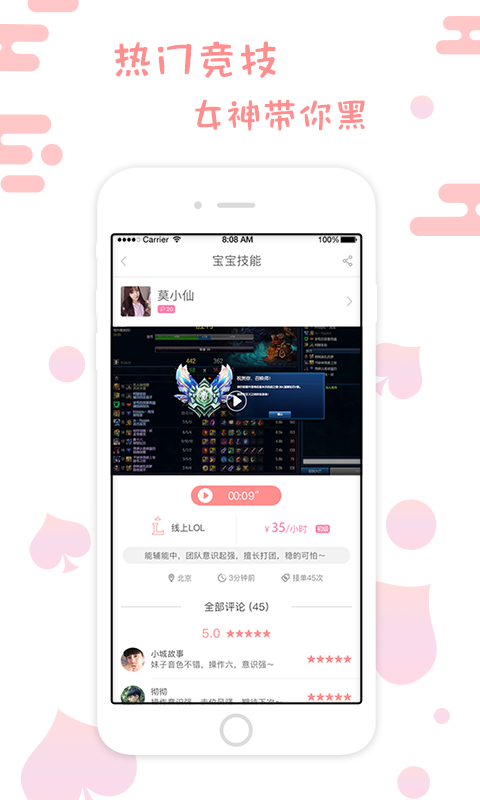 【囊括线上线下的服务类型】线上娱乐、线上游戏、线下娱乐、线下游戏、当地导游、都可以在这里找到需要的人;【根据个人需求定制化服务】满足个性化、差异化服务,可以发布自己的需求,挑选心仪的宝宝。她,可以貌美如花,温婉可人;他,可以帅气逼人,游戏操作6的飞起来;
