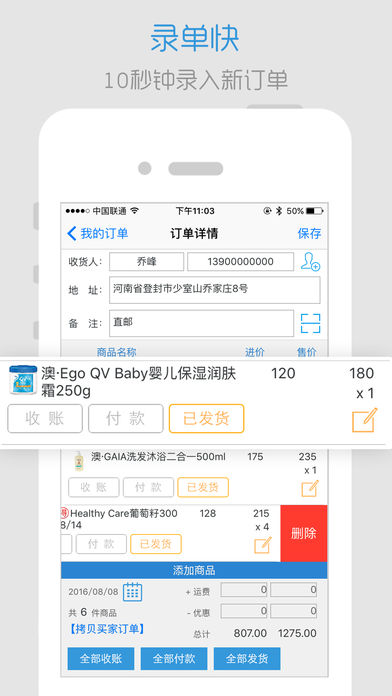【快速录单】10秒钟录入一个新订单!【不漏单】收款、付款、发货、自定义状态、客户名字组合筛选