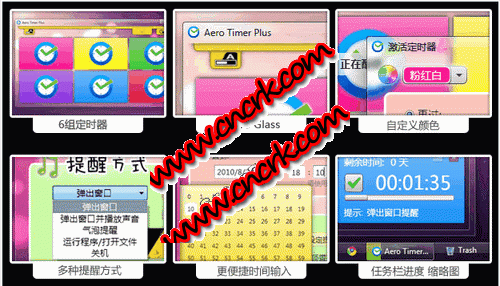 Aero Timer One 是单定时器版的 Aero Timer Plus,它同样支持任务栏缩略图,任务栏进度,Aero Glass玻璃窗体,多种定时方式,重复提醒,等。功能上同 Aero Timer Plus 完全一样,只是只能设定一组定时,界面也更加简洁,常用的功能菜单都被放置在系统托盘(其实应该叫系统通知区)图标的右键菜单中。