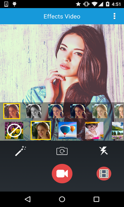 如果您有上述任何一个困扰,快来试试这款超级特效视频程序吧,它能在你拍摄视频时实时加入各种超美的特效。相对其他同类应用,我们具备如下特点:1. 实时视频特效:滤镜在您拍摄时同步加入,所见即所得,省去您再进行后期处理的麻烦,就跟您往相片中加特效一样简单。