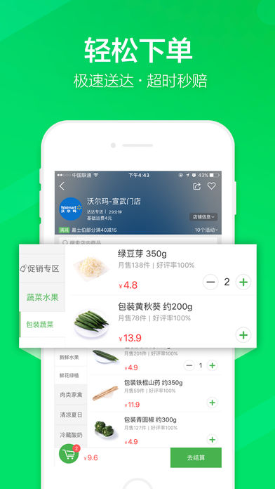 1.新人礼:新用户注册首单享受立减优惠2.大品牌:沃尔玛,永辉,永旺等知名超市让你足不出户随时逛;带有“7天包退”标志门店售出的商品(含生鲜)均可享受7天无条件退货服务;