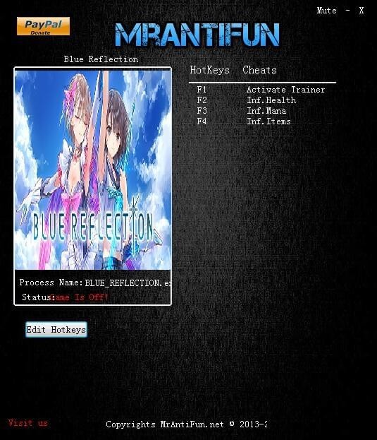 蓝色反射幻舞少女之剑四项修改器 免费版 蓝色反射幻舞少女之剑修改器是专为《蓝色反射幻舞少女之剑》游戏玩家提供的游戏修改工具。该工具是由MrAntiFun制作,拥有无限生命、无限魔法、无限道具等功能,有爱自取。