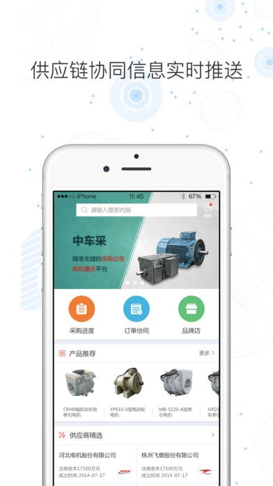 中车购是中车集团打造的面向轨道交通行业的供应链协同电子商务平台。通过整合中车资源,平台提供了涵盖采购招标、供应链协同、市场营销、物流、金融等一体化服务。为中车企业和供应商构建了一个“开放、互联、创新、协同、共享”的产业生态圈。【软件特点】
