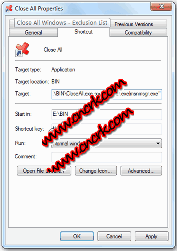 -x=”explorer.exe|msnmsgr.exe”即可排除explorer和msnmsgr两个程序。