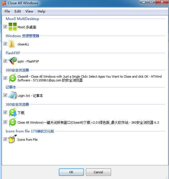 Close All Windows是一款电脑程序关闭软件。软件体积小巧,操作方便。一键关闭所有程序可以在电脑运行过多程序而卡死时,一键帮你关闭所有程序窗口,让电脑立马运行正常。不用再关机重启了。