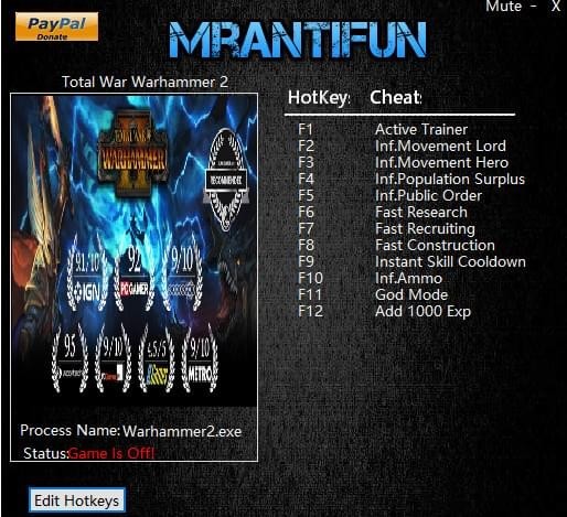 全面战争战锤2修改器是专为《全面战争战锤2》游戏玩家提供的修改工具。该工具拥有快速研究、快速募兵、快速建造、技能无冷却、无限弹药等等功能,为玩家提供强大的十二项游戏修改功能。
