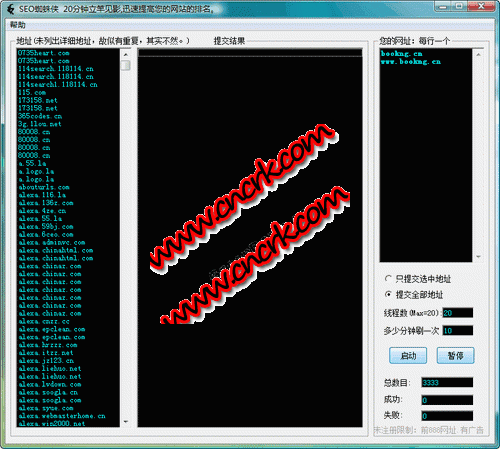 SEO蜘蛛侠 V3.01 简体中文绿色免费版 ◆半免费软件,注册后功能更多!迅速提高您的网站的排名!!!