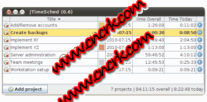 jTimeSched是一个简单,易于使用的时间跟踪工具,目的是为了帮助用户最大限度的利用时间。任务可以按颜色归类,可以按标题、分类、创建时间或当 前状态进行排序。支持系统托盘图标,可以用不同的图标显示当前状态是运行还是暂停,支持用tooltip信息显示当前运行任务相关信息。