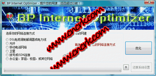 BP Internet Optimizer是完全免费的网络提速软件。 工作原理:更改TCP/IP协议,如MTU(最大传输单元),RWIN(TCP窗口接收),以及其他一些重要参数。