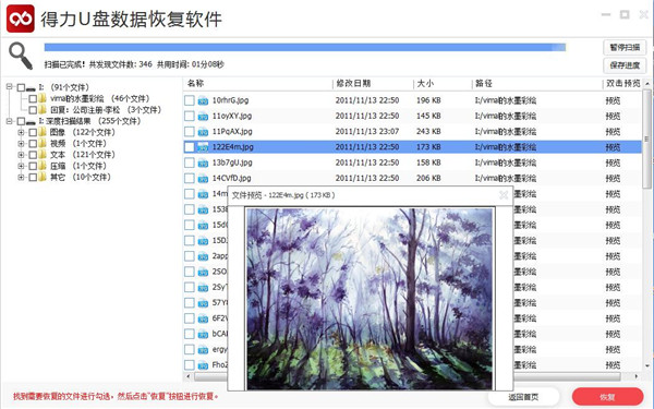 3、边扫描边显示,找到数据即可恢复,不用等扫描完成。