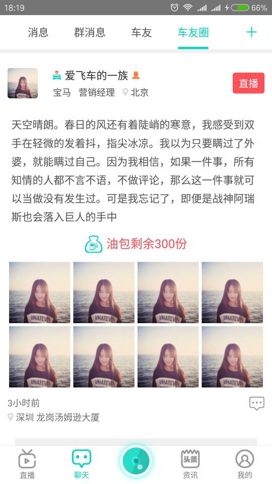 倾听车主声音,尊享一键应用,立足中国车主,辐射全球华人。实现城城直播,只要有华人的地方就有车主直播,打造以车主为核心导向的汽车产业生态圈。