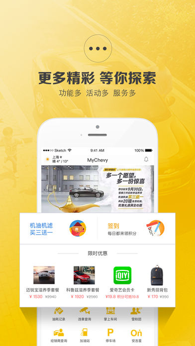 MyChevy app智能导航系统,为广大车主们第一时间找到周围的加油站和停车厂,MyChevy app不再担心出门找不到停车场咯!MyChevy app专属零部件官方直营店。MyChevy app零部件更换的时候直接通过MyChevy app购买,MyChevy app官方零部件直营价最便宜。【功能介绍】