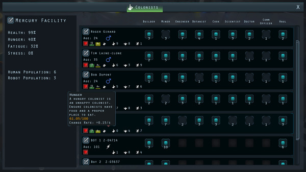 《水银泻地(Mercury Fallen)》是一款模拟类经营游戏,由Nitrous Butterfly制作发行,游戏主打殖民地题材。游戏中,玩家将管理一群殖民者,让他们在一个陌生的世界生存。游戏提供了自动化机器建设,但现在出现了一些故障,你必须安排殖民者去修复这个设备。游戏中还可以挖掘资源,种植作物,建造新的生产设施。