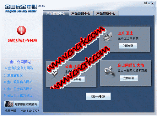 全新的修复体验配合金山卫士修复箱使电脑修复一步到位,给你新一代急速修复体验!还不赶快试试?修复金山卫士更高效