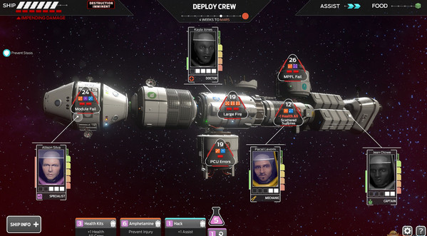 这款回合制战略游戏以人类第一次载人火星任务为背景,在这次长达300天的超级任务中发生了一个巨大的灾难——一颗不明真相的小行星撞击了太空飞船,而你要做的就是控制事态完成任务,在可能性微乎其微的登陆火星之路上继续前进。游戏采用骰子决定命运,宇航员间将残忍地角逐出登陆火星的渺茫机会,相信会是一款精彩游戏,喜欢太空题材的小伙伴千万别错过了。