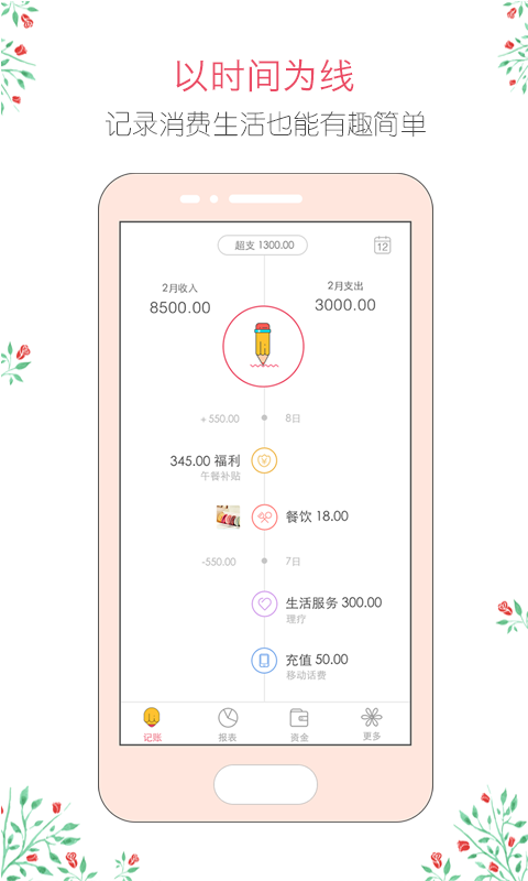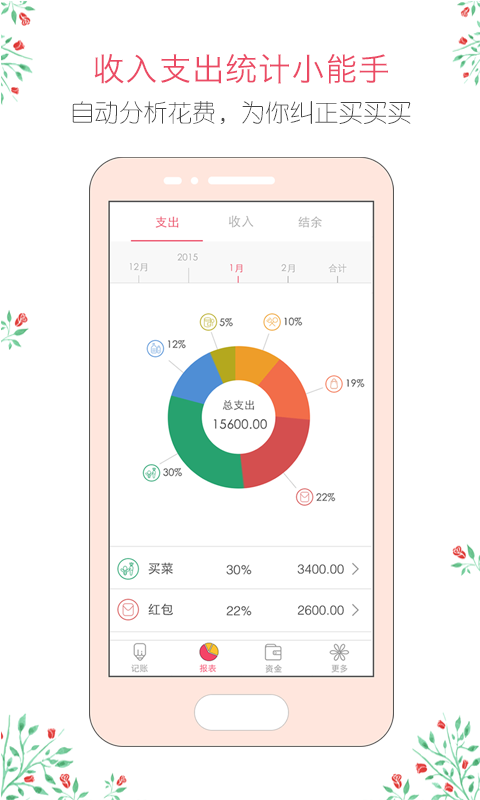 4、每月支出明细图表,收入明细图表和收支结余明细图表直观的向您展示了您每月的资金流向脱离月光族,从“记”开始