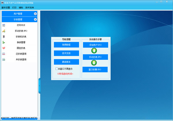 酷顺天然气收费系统是一套完善的收费系统。本系统包括了八大组成部分:用户管理、开户管理、抄表管理、预存管理、收费管理、减免管理、短信平台、数据报表。经过三年100家收费企业使用,取得了良好的经济效益和社会效益。【软件特色】