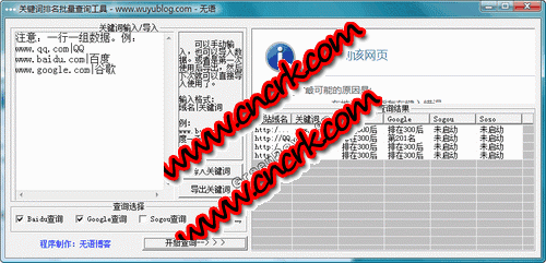 关键词排名批量查询工具 V1.1 简体中文绿色免费版 批量查询关键词在搜索引擎的排名。